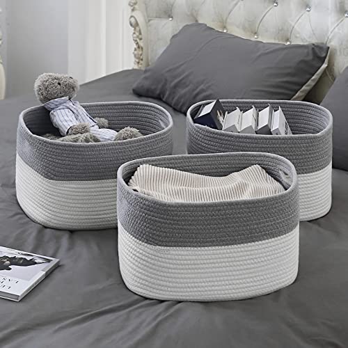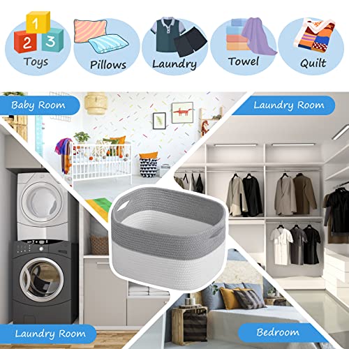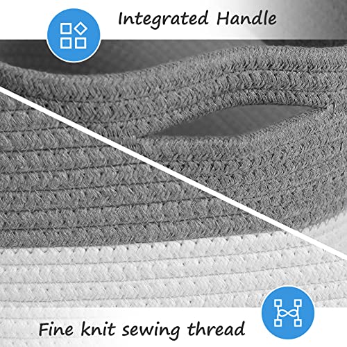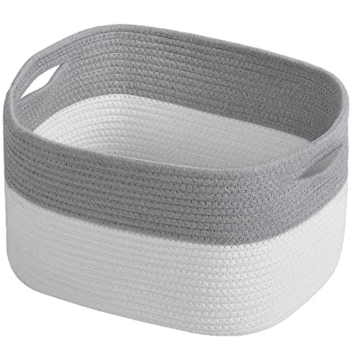ECDYQXVU - Cotton Rope Storage Baskets 15x10x9 in, Decorative Woven Baskets for Storage, Collapsible Storage Bins Organizer for Nursery, Laundry, Towel, Clothes, Books (1 Pack, Grey/ White)