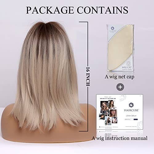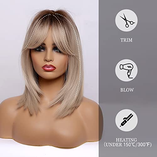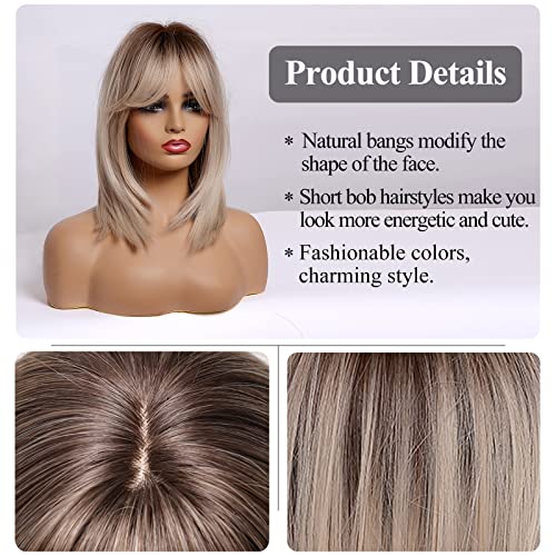 ECIF - Ash Blonde Bob Wig With Bangs Short Blonde Wigs For Women Shoulder Length Bob Wig Natural Synthetic Wig For Daily Use
