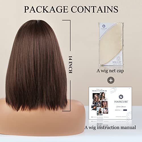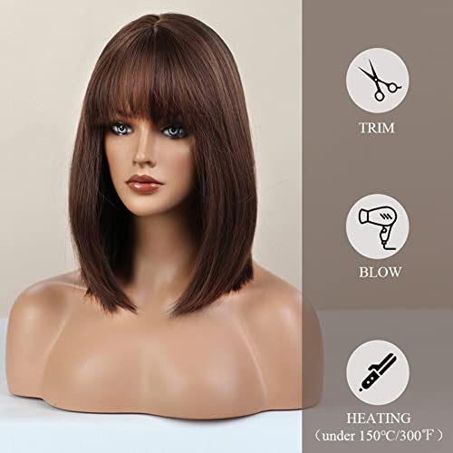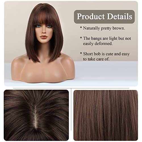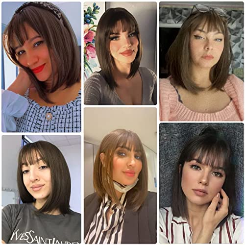 ECIF - باروكة بلون بني وقصة بوب مع غرة للنساء، باروكة بلون بني قصيرة بطول الكتف، صناعية وطبيعية مفرودة ومناسبة للاستخدام اليومي من ECIF (بني غامق)