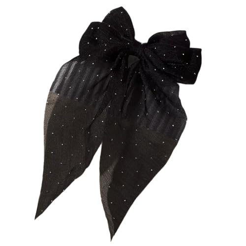 ECIF - Hair Bow – Soft Satin Girls Hair Clip – Elegant Design Suitable for All Ages and Occasions – Light and Comfortable for Daily Use (balck, 33cm with stris)