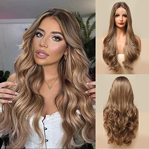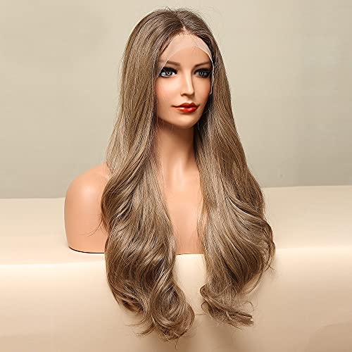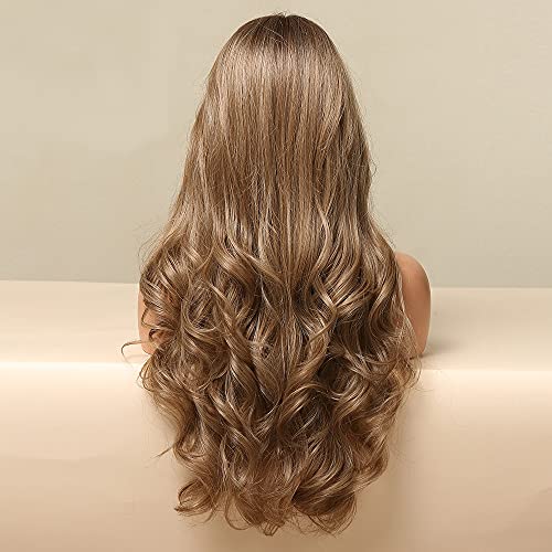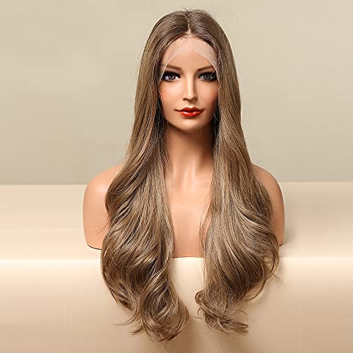 ECIF - Light Brown Lace Front Wigs Long Curly Wave Middle Parting Natural Hair Line Synthetic Wigs For Women Heat Resistant Fiber Hair