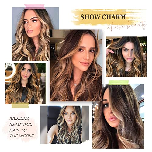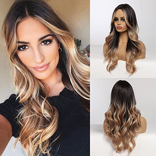 ECIF - Long Curly Wigs For Women Natural Ombre Wigs Dark Brown Roots To Blonde Wigs Middle Part Wigs Heat Resistant Fibre Synthetic Women's Wig 24 Inch Daily Natural Lookin