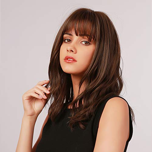 ECIF - Short Brown Wavy Bob Wig With Bangs,Shoulder Length Wigs For Women Short Curly Women's Wigs Natural Looking Heat Resistant Synthetic Wigs For Party Cosplay Halloween