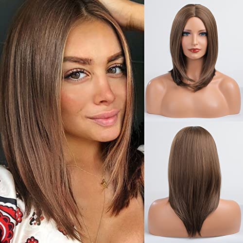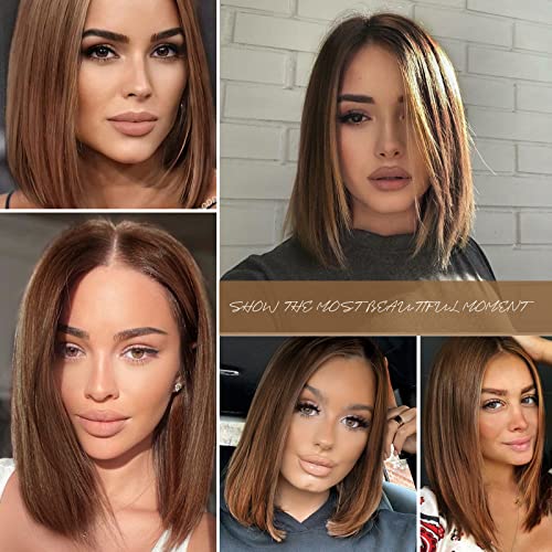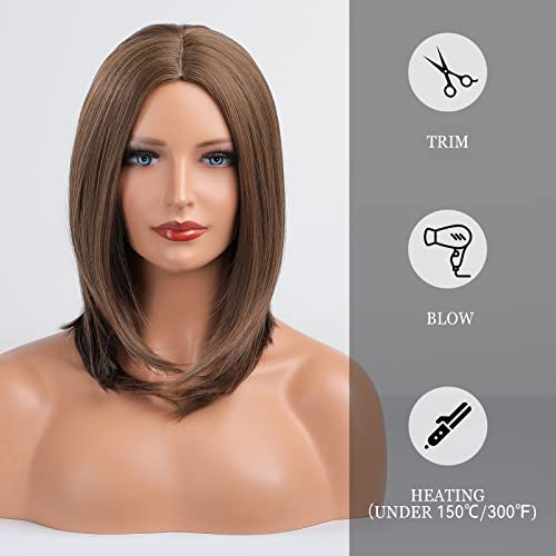 ECIF - Synthetic Bob Central Parting Short Wig For Women - 12In, Brown
