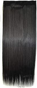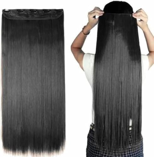 ECIF - وصلة شعر ملساء بمظهر طبيعي مع 5 مشابك للنساء من ECIF، لون أسود