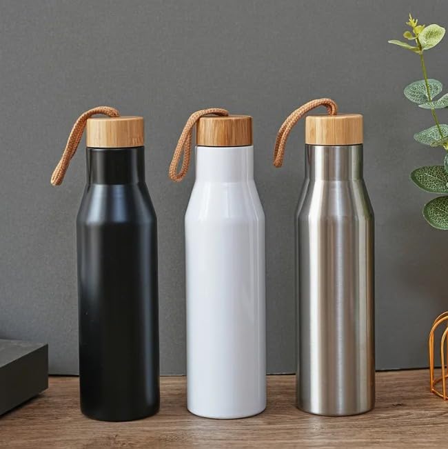 - تصميم صديق للبيئة: مصنوع من الستانلس ستيل الخالي من البيسفينول أ مع غطاء من الخيزران الطبيعي.