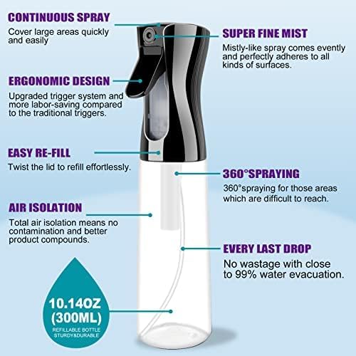 - 【360 Degree Hair Spray Bottle】Continuous spray bottle can spray 360 degrees to hard-to-reach areas. You can even use it sideways and upside down without leaking or losing primer, so all areas are reached so you can utilize even the last drop