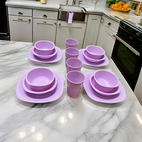 eco PLAST - eco PLAST Dinnerware Medium Plates Set - 16 Pcs - (Light Purple Lilac)