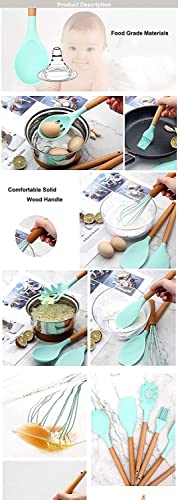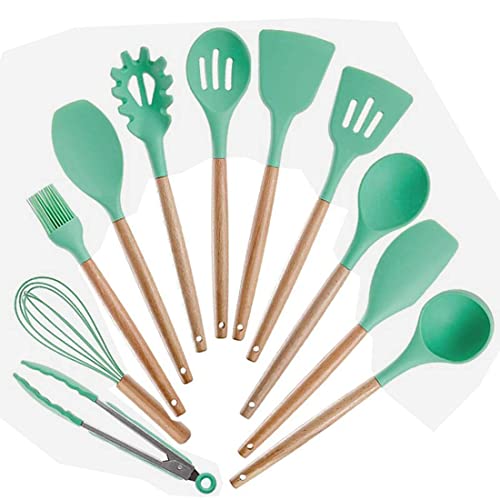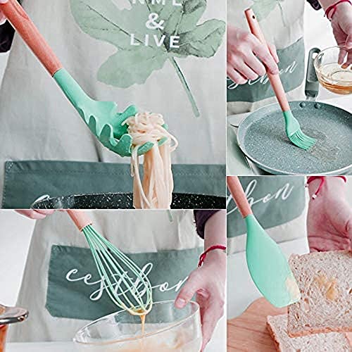 Eco Shopee SHOPPING SIMPLIFIED - 12pcs Wooden Handle Silicone Cooking Spoon Set High Temperature Resistant Silicone Spatula Kitchen Utensils (Sea Green)
