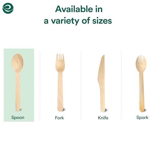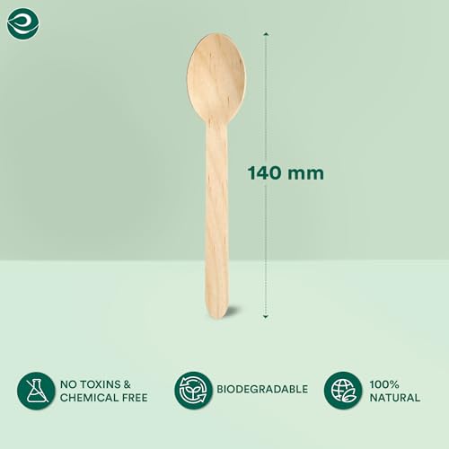 ECO SOUL - ECO SOUL [140mm, 200 Pack] Disposable Spoons | Wooden Dining Flatware | Ideal for Kids Birthday, Wedding & Party