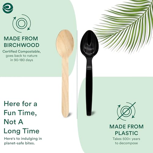 - All Occasion Spoon: Our Spoons are wax and plastic free offering you reliable sturdy strength to serve all types of quality food. Disposable utensils are perfect for parties, weddings, camping, birthday, and event.