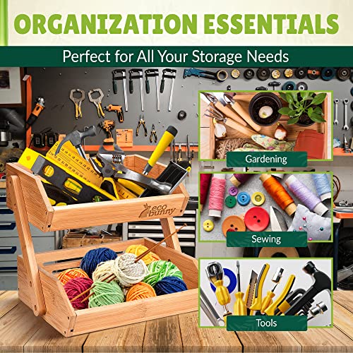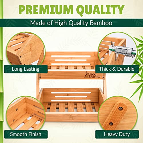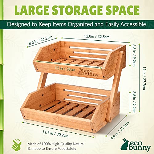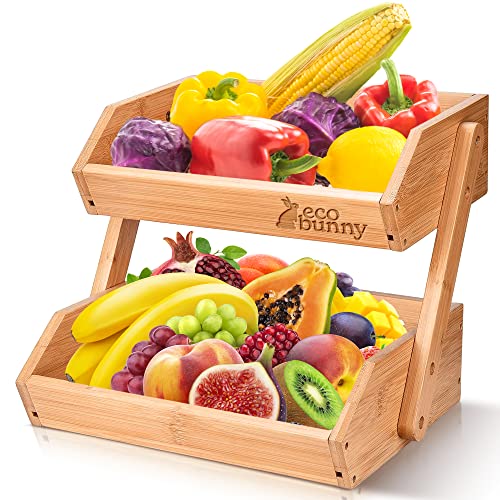 Ecobunny - سلة فاكهة من الخيزران ايكوباني لطاولة المطبخ بطبقتين بطول 11 انش لتخزين الفواكه والخضروات شديدة التحمل-متعددة الاغراض سعة كبيرة للخضروات والفواكه والوجبات الخفيفة تجميع ذاتي