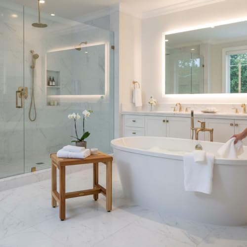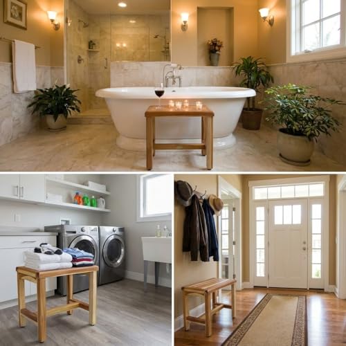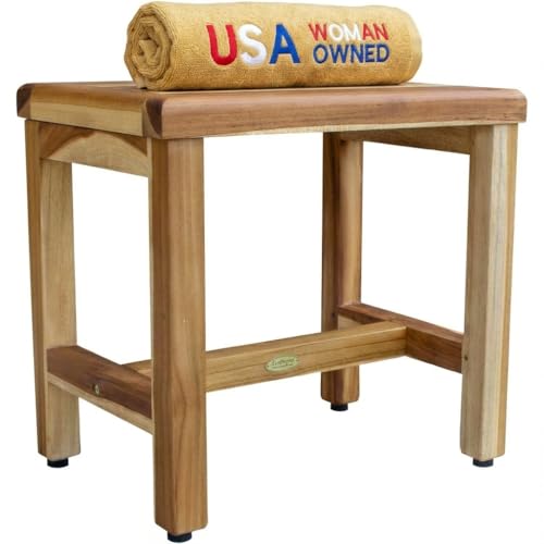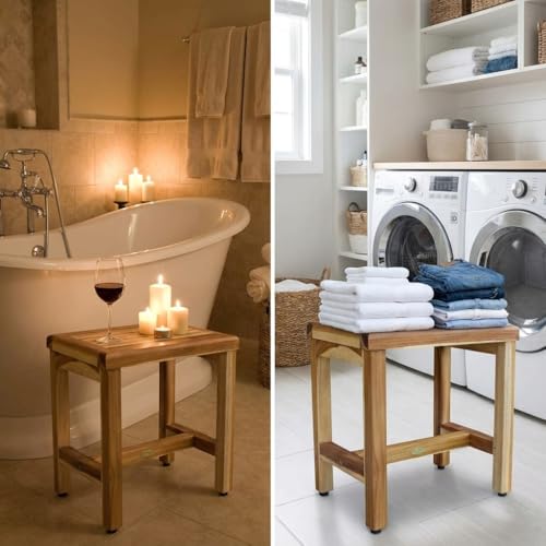 EcoDecors - مقعد استحمام من خشب الساج الطبيعي من ايكو ديكورس، مقاس 45 سم