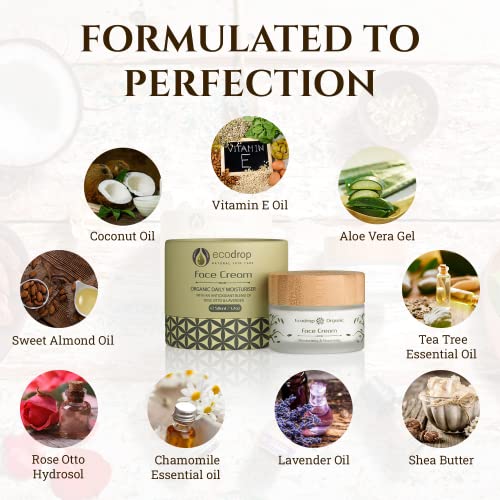 ecodrop essential oils - Ecodrop Organic Face Cream | Advanced Daily Facial Cream for Women | 100% All Natural Ingredients | Moisturiser & Anti Ageing Treatment