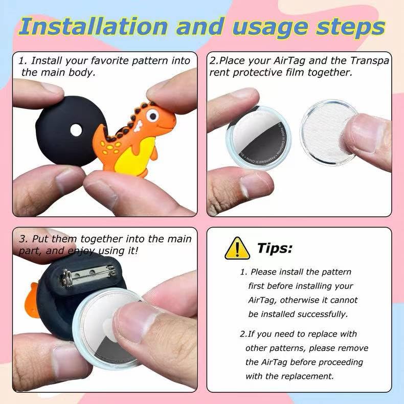 - 【Compatibility for Airtags】This holder is specially designed for A.Tags (Note: A.Tag is not included) and fits perfectly to your Tag size,so avoid tag falling-off. Holder ensures tag fixed stably avoiding tag lost. Note: Not recommended for children under the age of 3, nor directly fixed on the underwear, as the Tag holder has sharp pins.