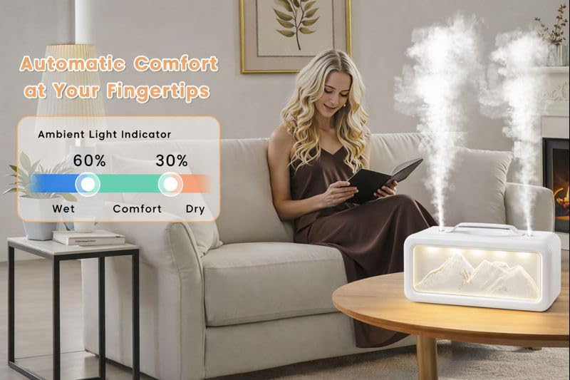 - 【Designed for Deep Sleep】This humidifiers for bedroom features a unique sleep mode with a quiet spray technology, operating at a noise level as low as 23 decibels, ensuring ultra-quiet operation. Ideal for nurseries and places where a quiet environment is needed for light sleepers.