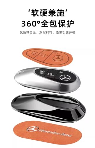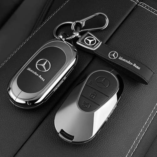 ecosystem - Ecosystem Premium Car Key Case Cover, Zinc Alloy with Leather Shell, Compatible with Mercedes-Benz Key C E S G Class W223 W206 C260 C300 S400 S450 S500 2022-2026, Smart Remote Keyless Entry (Black)