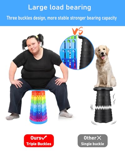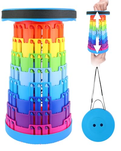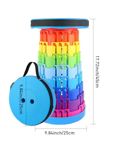 Ecrekhom - مقعد قابل للطي من ايكريكوم بسعة تحميل 500 باوند، كرسي محمول خفيف الوزن وقابل للطي للبالغين، تصميم تلسكوبي لصيد الاسماك في الهواء الطلق والمشي لمسافات طويلة والسفر والشواء (ازرق - قوس قزح)