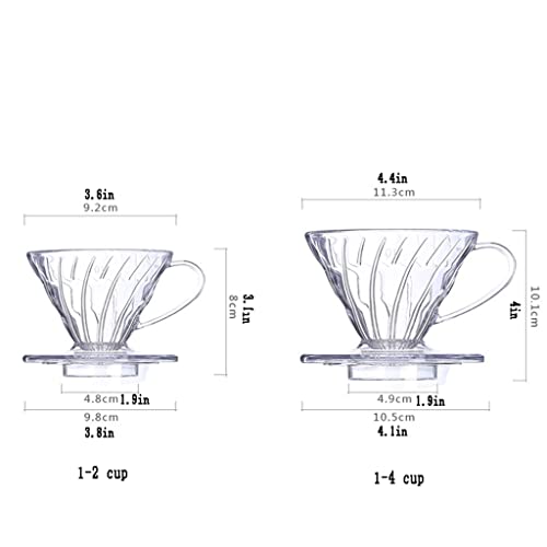 ecsefnlenrescc - Coffee Filter Drip Coffee Filter Cup Transparent Resin V60 Cone with Handle and Base Reusable Coffee Dripper 1-2 1-4 cup (Size : 1-2 cup)