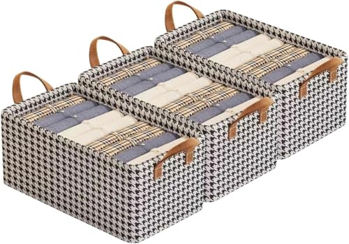 ECVV - منظم ملابس لخزانة الملابس قابل للطي وغير منسوج مع اطار ستيل قابل للتكديس مع مقابض للملابس والجينز والسراويل والسترات والفساتين، 3 قطع