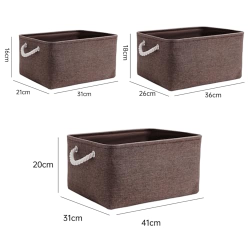 ECVV - 3PCS Collapsible Rectangular Storage Basket with Handles, Storage Bins Organizer Shelf Basket for Organizing Shelves, Closets, Clothes, and Toy (Brown)