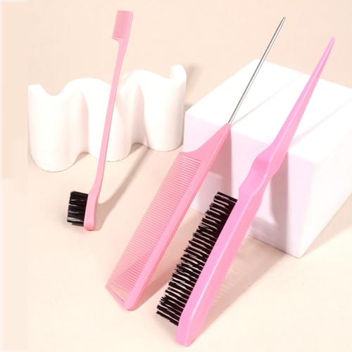 ECVV - مجموعة فرش ناعمة من 3 قطع، فرشاة شعر بشعيرات للنساء والفتيات، مشط تضييق الحواف، مشط لتصفيف الشعر، مشط ذيل الفئران لتنظيف الحواف والظهر، زهري