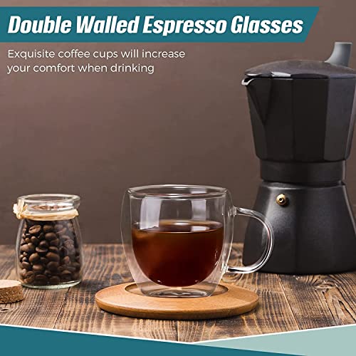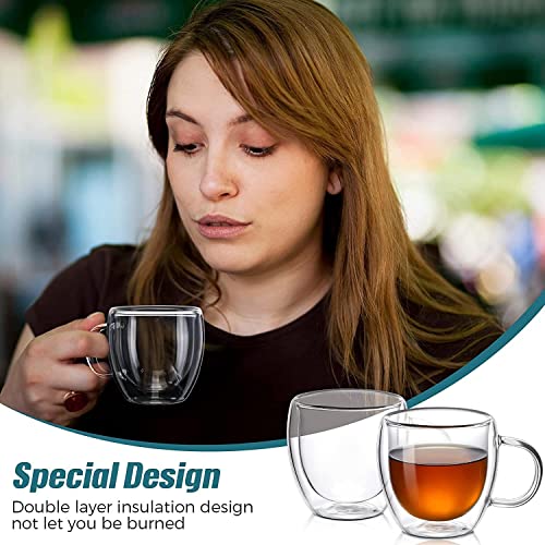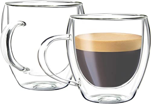 ECVV - أكواب قهوة زجاجية مزدوجة الجدران مع مقبض من اي سي في بطبقة معزولة كبيرة البورسليكات اكواب شفافة مثالية للاسبريسو والكابتشينو والشاي واللاتيه والنبيذ 150 مل مجموعة قطعتين