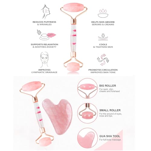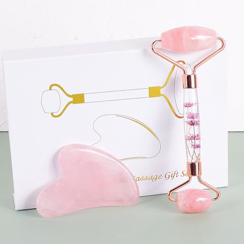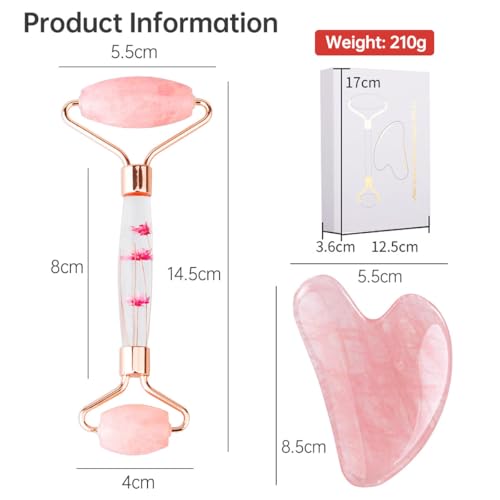 ECVV - Gua Sha & Jade Roller Set: Reduce Puffiness & Redness, Boost Skin Care Routine, Ideal Self-Care Gift for Men & Women, Premium Facial Tools