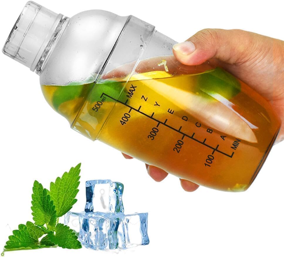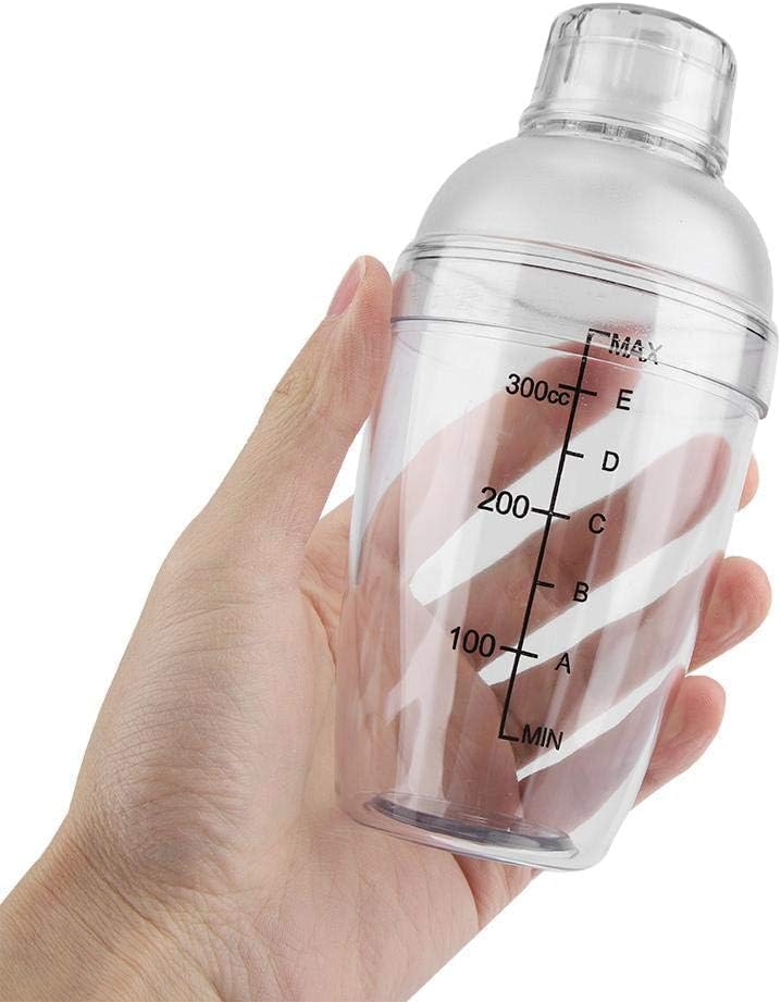 ECVV - Plastic Cocktail Shaker, Hand Drink Mixer Boba Tea Shaker Cup with Scales,Bar Tool Transparent - 350ML