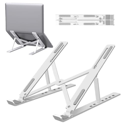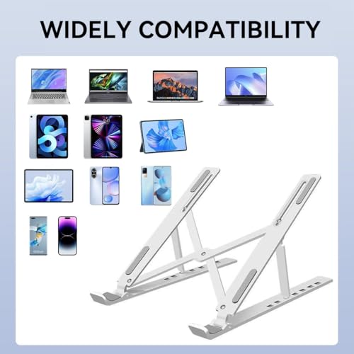 ECVV - Portable Laptop Stand for Desk, 13-Angles Adjustable Foldable Laptop Riser ABS Ergonomic Notebook Stand, Compatible with Laptops and iPad(11-17") (White)