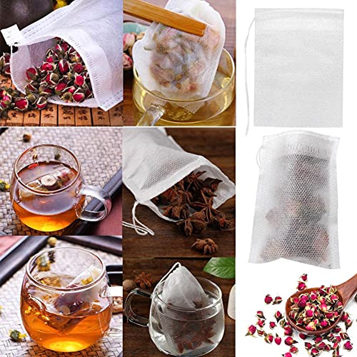 Yangld - ECVV Tea Bag Disposable Tea Filter Bags Empty Non-woven Fabric Drawstring Seal Mesh Bags for Filter Loose Leaf Tea Iced Coffee-200pcs