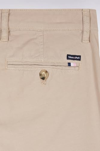 Eden Park - Eden Park Men Beige Stretch Cotton And Linen Pleated Chino Pants, Straight Cut