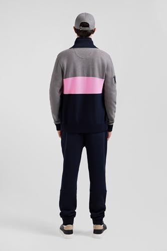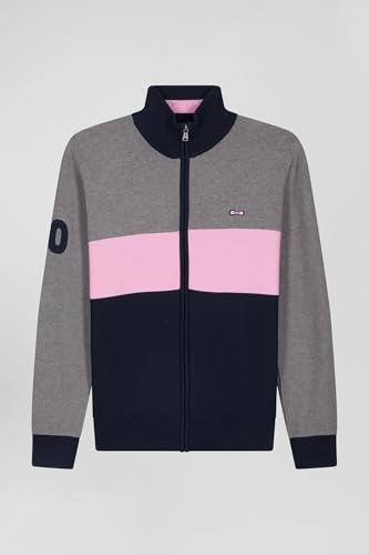Eden Park - Eden Park Men Tricolor High Collar Zipped Cardigan With Embroidery 10 And Mesh Play