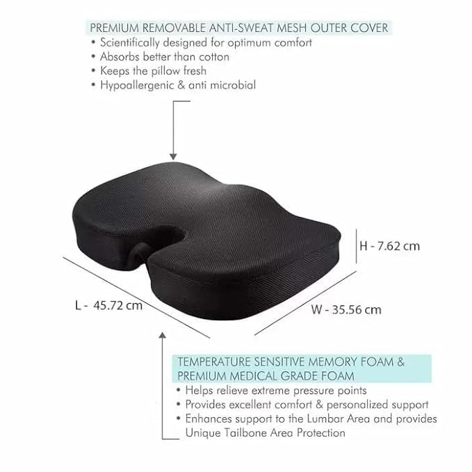 Eder Care - Non-Slip Orthopaedic Foam Coccyx Seat Cushion Combo Offer, 2 Set, Relieves Back, Coccyx Pain, Orthopedic Support, for Long Sitting Hours on Office/Home Chair