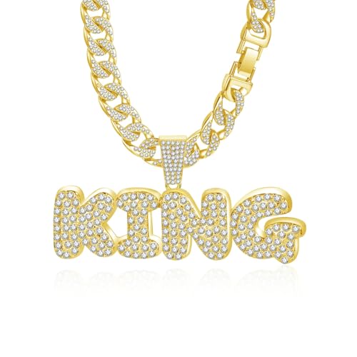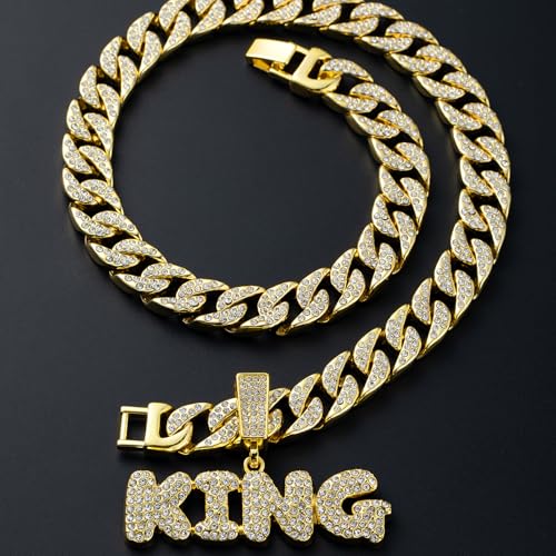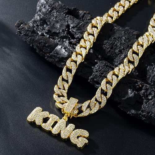 EDINGM - EDINGM Cuban Link Chain for Men, Miami Mens Chain Silver Gold Plated Bling Necklace Diamond Chain for Men Iced Out Chain Hip Hop Jewelry