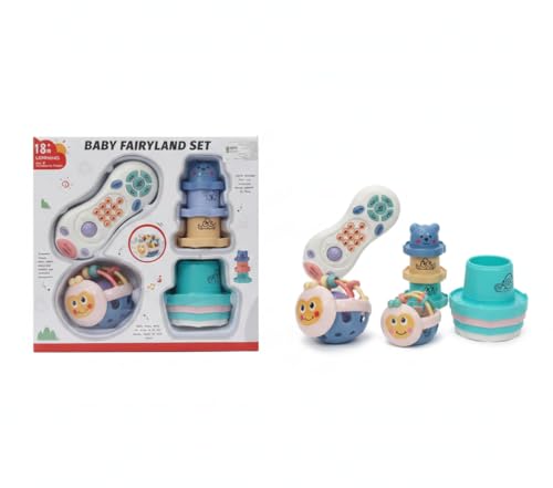 - Complete educational play set: includes interactive remote control with colorful buttons, 2 smiling face toys with rainbow handles, 3 tier bear stacking tower, and multi-layer stacking cup