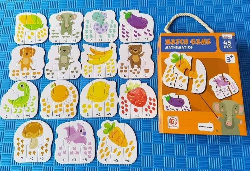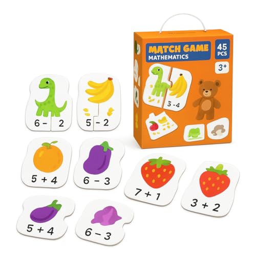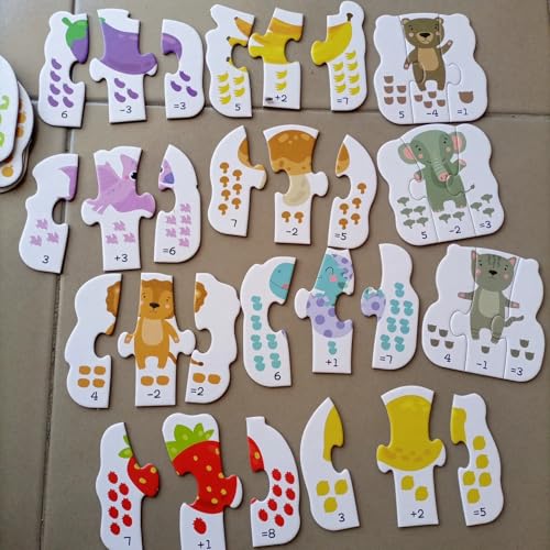 Generic - Educational Puzzle | Match It Mathematics | for Kids 45 Pieces - Cartoon Animal,vegetables Shapes with Bright Colors Develops Intelligence Skills and Visual Coordination