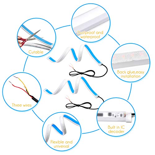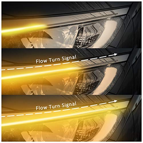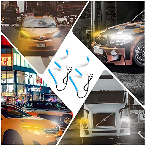 eecoo - eecoo LED Strip Lights Daytime Running Lights with Flexible Two-Color LED Lights, 60CM Cuttable LED Strips, White and Amber Waterproof Strip Lights, Used as Driving Lights Turn Signals (2 pcs)