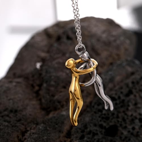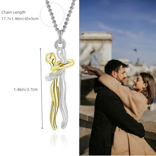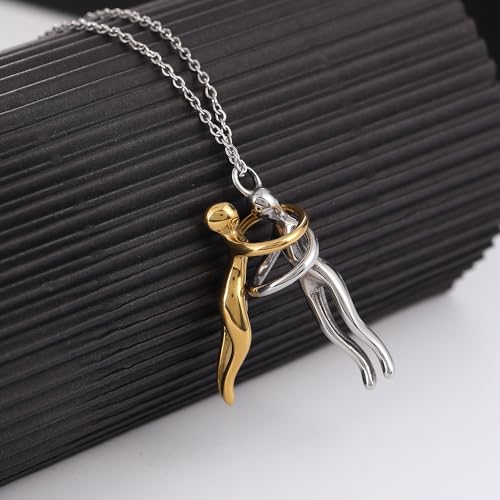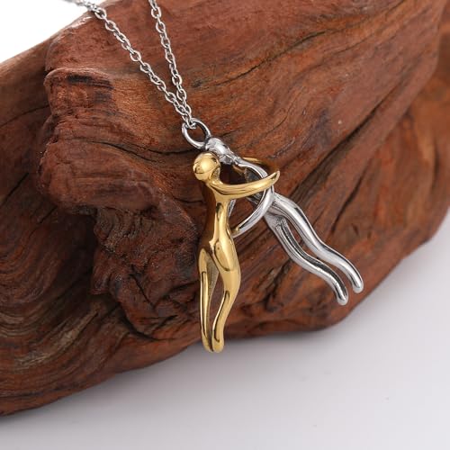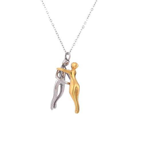 EENSYWEENSY - قلادة عناق للازواج، قلادة عناق من الستانلس ستيل، قلادة يونيتي، مجوهرات توأم الروح، هدية عيد الحب، مقاس M، من الستانلس ستيل، بدون احجار كريمة