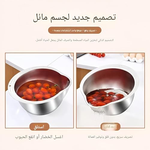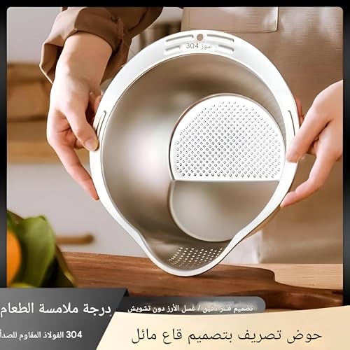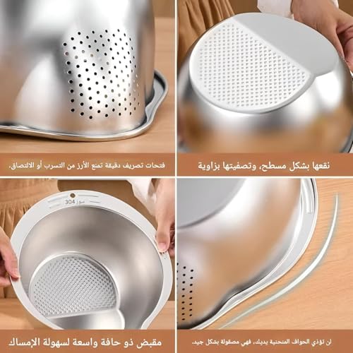 Generic - Efficient Rice Washing Device - Stainless Steel Strainer with Tilted Base for Perfect Drainage and Level Surface for Soaking, Silver Finish for a Stylish Kitchen Accessory