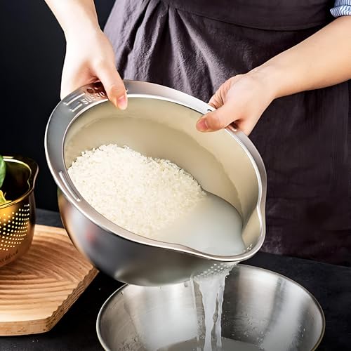 - Equipped with evenly distributed fine perforations, this strainer ensures thorough cleaning, soaking, and water draining of rice, vegetables, and fruits with minimal effort, making it a reliable kitchen tool for achieving perfectly washed ingredients every time.