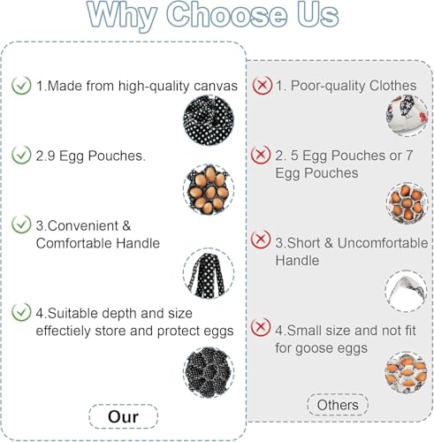 - [Built to Last] - Made from high-quality canvas, this sturdy egg basket is designed to withstand daily use, ensuring long-lasting durability for farm or backyard egg collection.