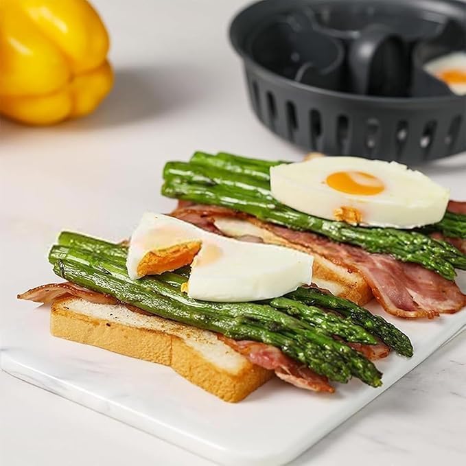 • 2 in 1 egg cooker designed for boiling, scrambling, and making omelet eggs