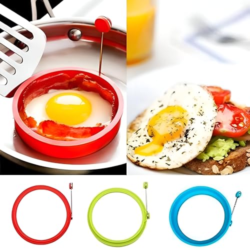 Generic - Egg Shaper Tool - Silicone ring mold for flawless fried eggs and pancakes, non-stick, multicolor, easy-grip handle for safe kitchen use (2pcs)
