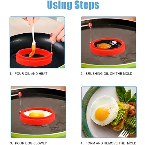 - The silicone material retains heat efficiently, ensuring even cooking and perfectly shaped eggs, pancakes, or patties every time, while also enhancing the visual appeal of your breakfast dishes with neat, uniform edges.