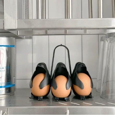 - This 3-in-1 penguin-shaped egg holder and boiler allows for boiling, storing, and serving up to six eggs efficiently. Its modern spiral design with 360-degree rotation provides organized storage, saving space and adding a decorative touch to your kitchen surface.