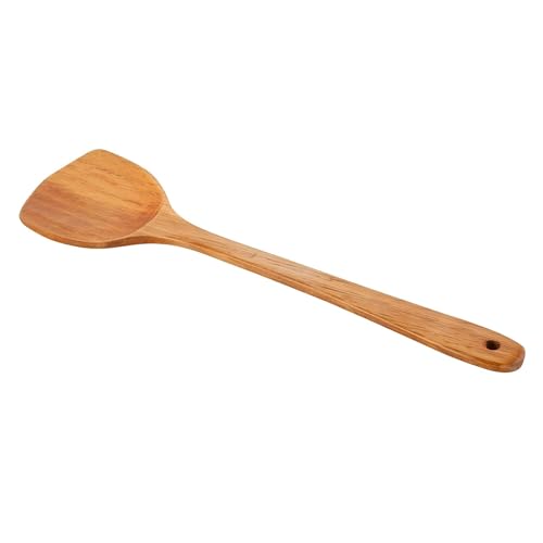 - Durability and heat resistance are emphasized in the product description: the wood is described as resistant to high temperatures, not easy to deform, with no burr, anti-cracking, durable, and not easy to mold or leak, which positions this spatula as a reliable wooden turner suitable for frequent stirring, turning, and cooking tasks in busy environments like restaurants, food shops, and catering halls.
