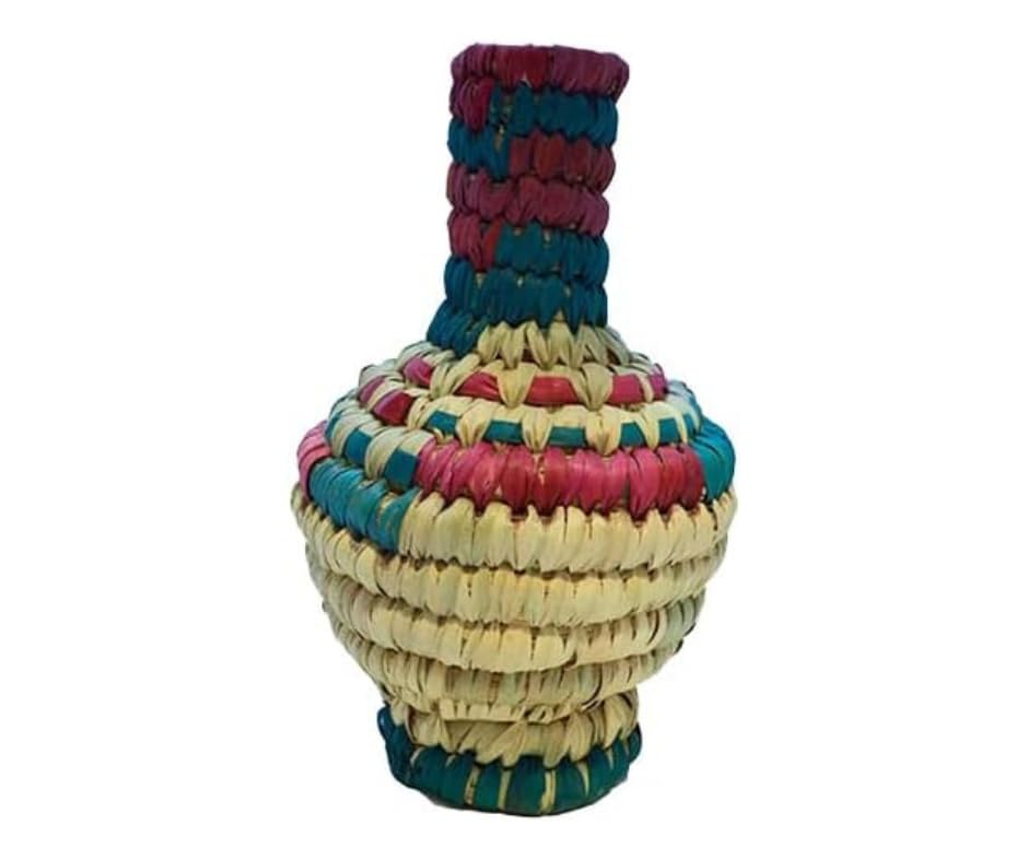 Egypt Antiques - فازة ملونة مصنوعة يدويا من جريد النخيل من ايجيبت انتيكس، ارتفاع 35 سم، متعددة الألوان