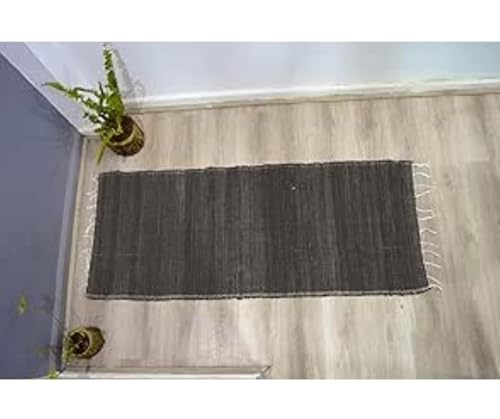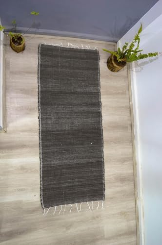 Egypt Antiques - Egypt Antiques Klim Natural Cotton Handmade Area Rug, 150 cm x 70 cm Size, Dark Grey