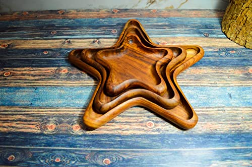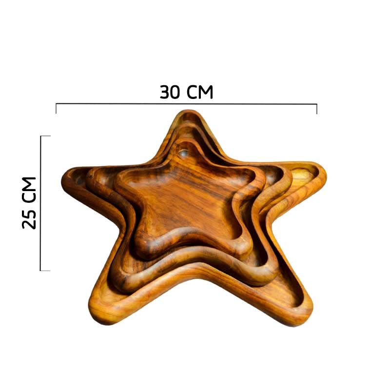 Egypt Antiques - طقم أطباق خشب على شكل نجمة مصنوعة يدويا من 3 قطع بلون طبيعي معالج بزيت الزيتون، من ايجيبت انتيكيكس